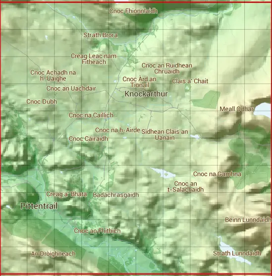 The NC70 10 square kilometre grid intersects with the settlement of Pittentrail.