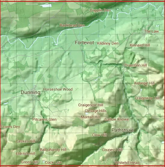 The NO01 10 square kilometre grid intersects with the settlements of Dunning & Forgandenny.