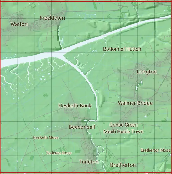 The SD42 10 square kilometre grid intersects with the settlements of Banks,Becconsall,Bottom of Hutton,Bretherton,Freckleton,Hesketh Bank,Hundred End,Hutton,Little Hoole Moss Houses,Longton,Much Hoole,Preston,Tarleton,Walmer Bridge & Warton.