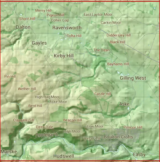 The NZ10 10 square kilometre grid intersects with the settlements of Aske,Dalton,Easby,East Layton,Gayles,Gilling West,Hartforth,Hudswell,Kirby Hill,Marske,Melsonby,Newsham,Ravensworth,Richmond,Skeeby & Whashton.
