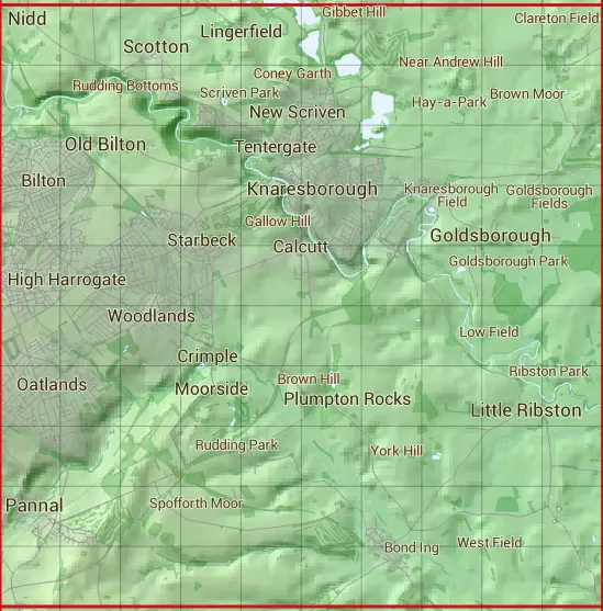 The SE35 10 square kilometre grid intersects with the settlements of Coneythorpe,Flaxby,Follifoot,Forest Moor,Goldsborough,Harrogate,Kirk Deighton,Knaresborough,Lingerfield,Little Ribston,Nidd,North Deighton,Old Bilton,Pannal,Scotton,Spofforth & Thistle Hill.
