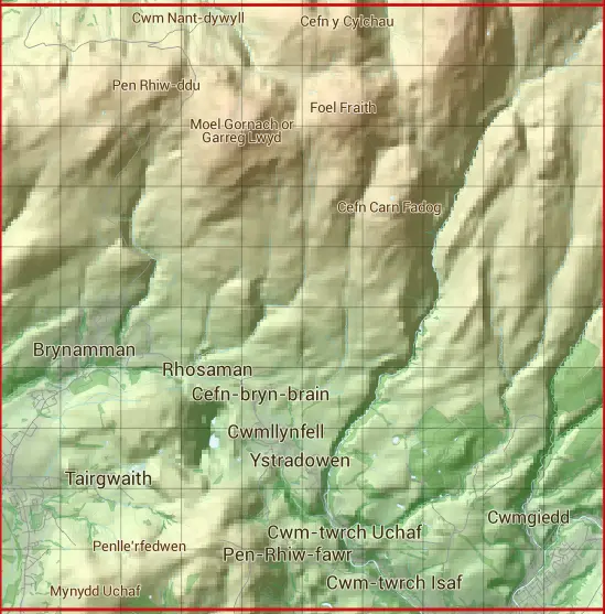 The square is within Castell-nedd Port Talbot - Neath Port Talbot, Powys - Powys & Sir Gaerfyrddin - Carmarthenshire councils.