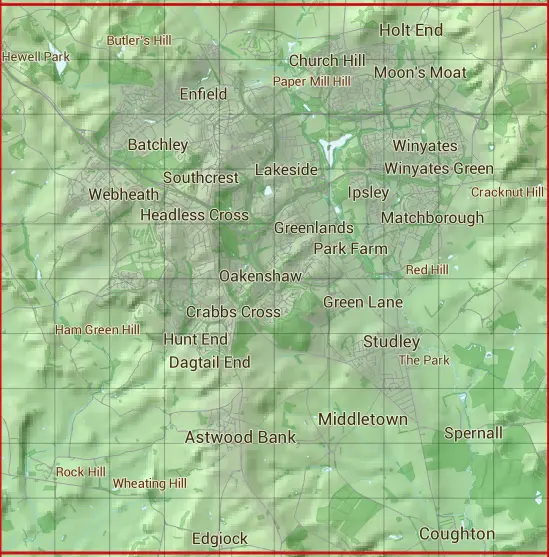 The square is within Bromsgrove District, Redditch District, Stratford-on-Avon District & Wychavon District councils.