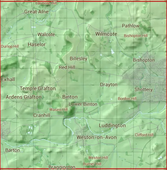 The SP15 10 square kilometre grid intersects with the settlements of Alcester,Alne End,Ardens Grafton,Aston Cantlow,Barton,Bickmarsh,Bidford-on-Avon,Binton,Clifford Chambers,Great Alne,Haselor,Lower Binton,Luddington,Pathlow,Stratford-upon-Avon,Temple Grafton,Welford-on-Avon & Wilmcote.