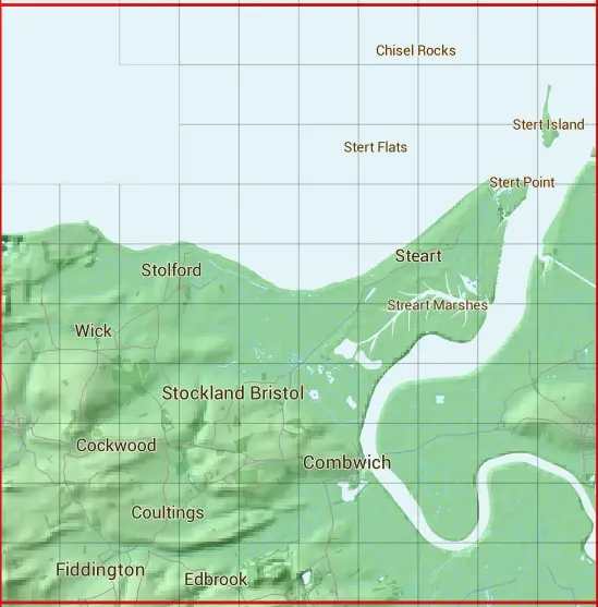 The ST24 10 square kilometre grid intersects with the settlements of Bonson,Cannington,Combwich,Coultings,Fiddington,Pawlett,Stockland Bristol,Stogursey,Stolford & Stretcholt.
