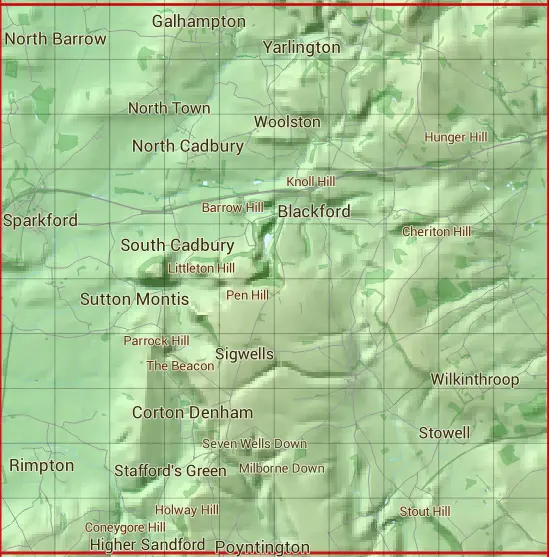 The ST62 10 square kilometre grid intersects with the settlements of Blackford,Bratton Seymour,Charlton Horethorne,Compton Pauncefoot,Corton Denham,Galhampton,Higher Sandford,Holton,Horsington,Lattiford,Maperton,Marston Magna,Milborne Wick,North Cadbury,North Cheriton,North Town,Poyntington,Rimpton,Sandford Orcas,South Barrow,South Cadbury,South Cheriton,Sparkford,Stowell,Sutton Montis,Weston Bampfylde,Whitcombe,Wilkinthroop,Woolston & Yarlington.