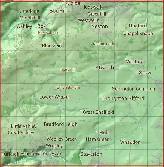 The ST86 10 square kilometre grid intersects with the settlements of Alcombe,Ashley,Atworth,Berryfield,Box,Box Hill,Bradford Leigh,Bradford-on-Avon,Broughton Gifford,Chapel Knapp,Chapel Plaister,Corsham,Gastard,Henley,Holt,Hudswell,Kingsdown,Little Ashley,Lower Wraxall,Melksham,Middlehill,Monkton Farleigh,Neston,Pie Corner,Rudloe,Semington,Shaw,Shockerwick,Staverton,Trowbridge,Turleigh,Wadswick,Whitley & Winsley.