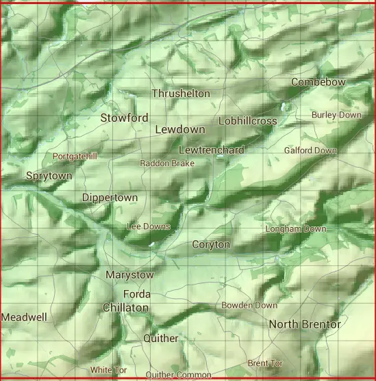 The SX48 10 square kilometre grid intersects with the settlements of Chillaton,Lewdown,Mary Tavy & North Brentor.