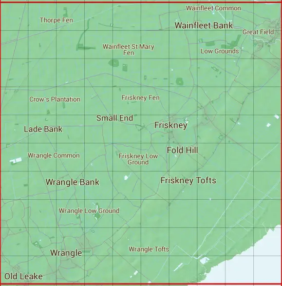 The TF45 10 square kilometre grid intersects with the settlements of Eastville,Fold Hill,Friskney,Friskney Eaudyke,Friskney Tofts,Lade Bank,Leake Commonside,New Leake,Old Leake,Small End,Wainfleet All Saints,Wainfleet Bank,Wainfleet St Mary,Wrangle,Wrangle Bank & Wrangle Lowgate.
